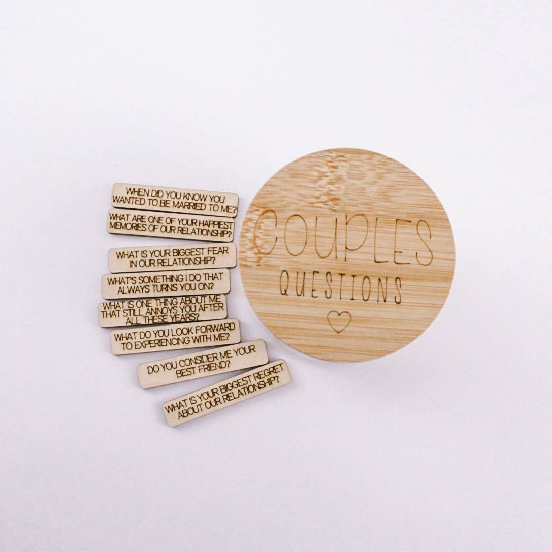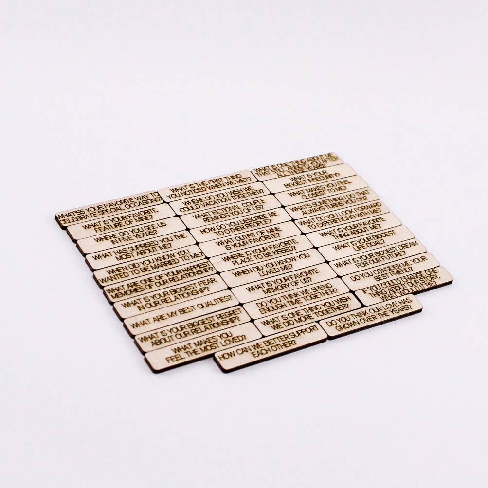 Spark meaningful conversations and deepen your connection with our Couples Questions Activity Jar! This glass jar holds 32 wooden tiles, each engraved with a thoughtful question designed to inspire intimacy, laughter, and understanding. Perfect for date nights or quiet moments together, this jar makes a unique and heartfelt addition to your relationship.